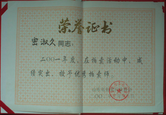 拍賣師證書(shū)